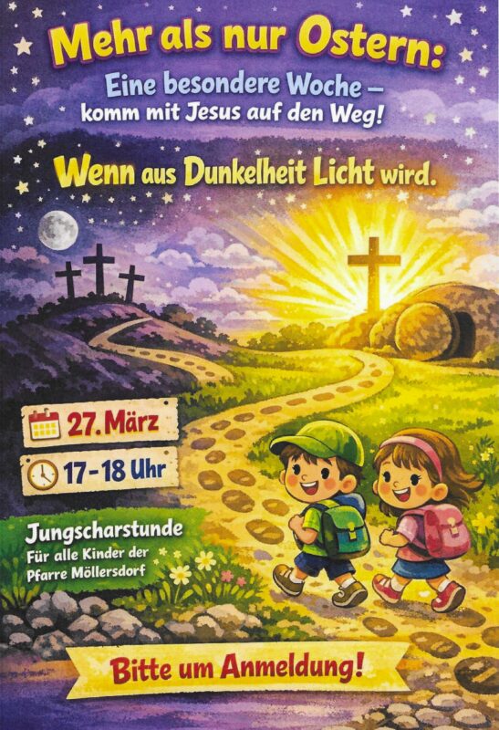 Mehr als nur Ostern + Zu Google Kalender hinzufügen + iCal / Outlook exportieren 00 Tage 00 Stunden 00 Minuten 00 Sekunden Datum März 27 2026 Uhrzeit 17:00 - 18:00 Standort Pfarrsaal Möllersdorf Teile diese Veranstaltung